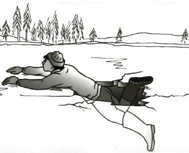 - Wer einbricht, sollte versuchen, sich am Eis festzuhalten oder darauf zu ziehen. Wenn das Eis weiter bricht, kann man sich mit Fäusten oder Ellenbogen einen Weg zum Ufer frei schlagen.